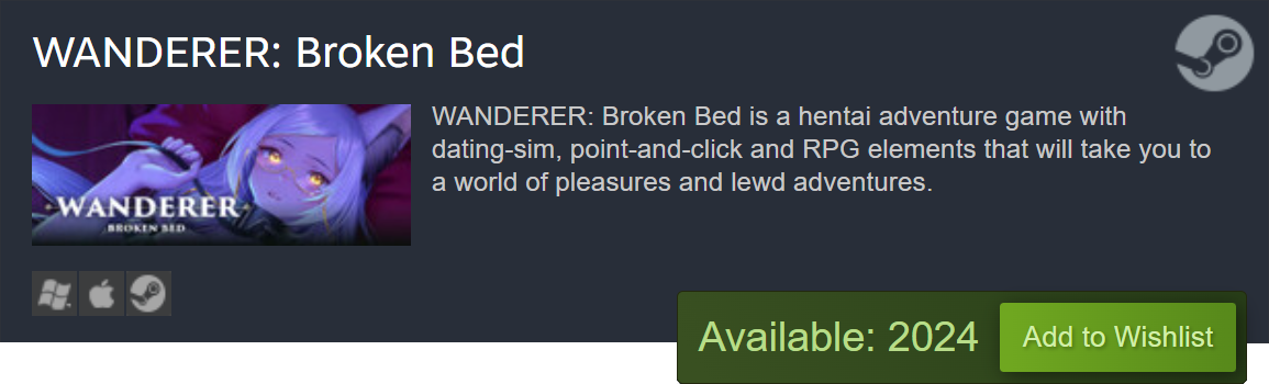 ADD OUR MAIN GAME "WANDERER: BROKEN BED" TO YOUR WISHLIST AND FOLLOW!